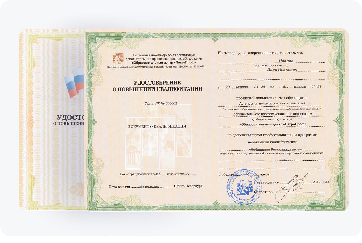 Наши программы повышения квалификации отличаются эффективностью, высоким качеством и структурированным материалом. Они охватывают большой перечень полезных тем и полностью соответствуют актуальным образовательным стандартам. После их освоения выпускники получают удостоверение о повышении квалификации, что станет весомым преимуществом в начале деятельности или профессиональном развитии.